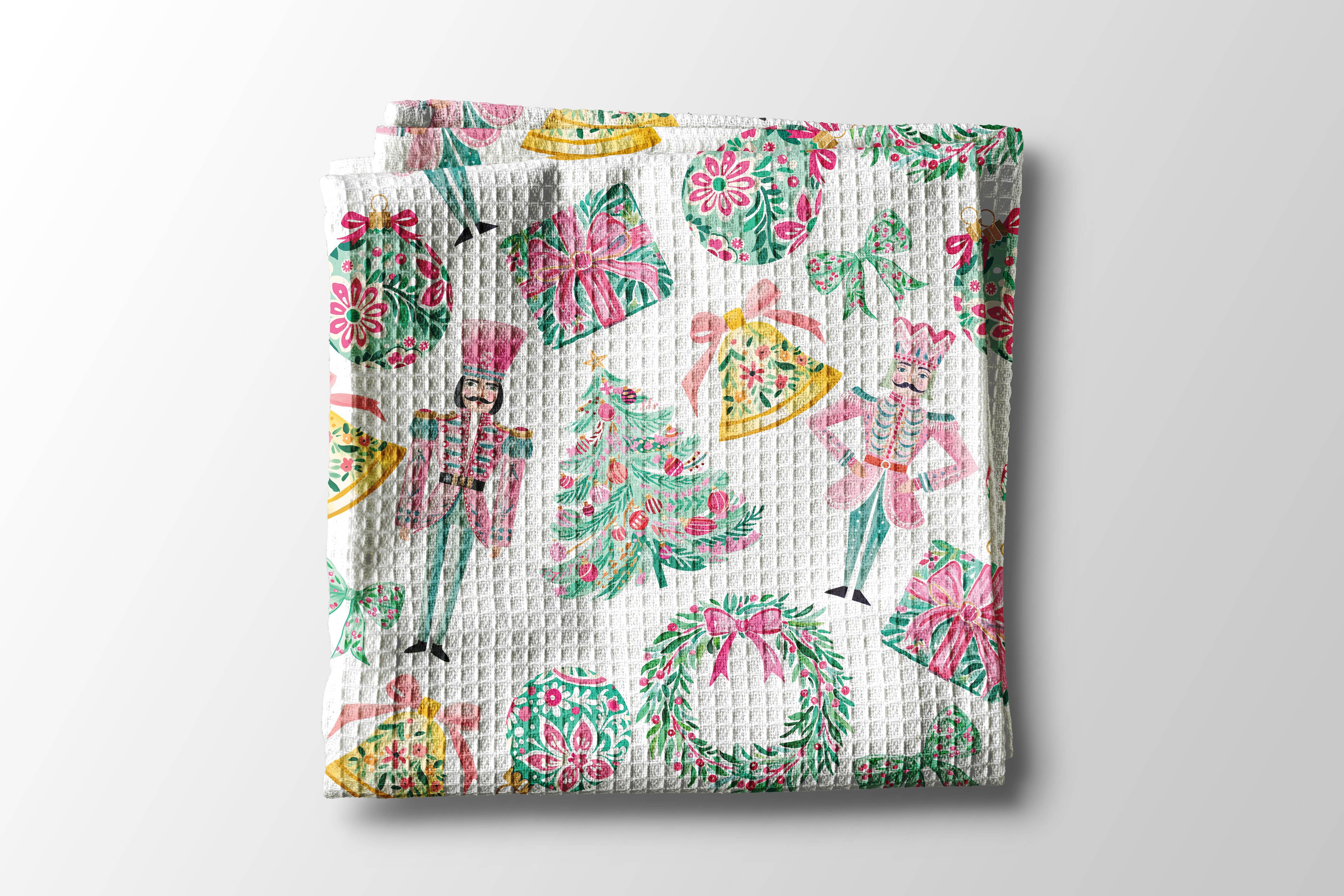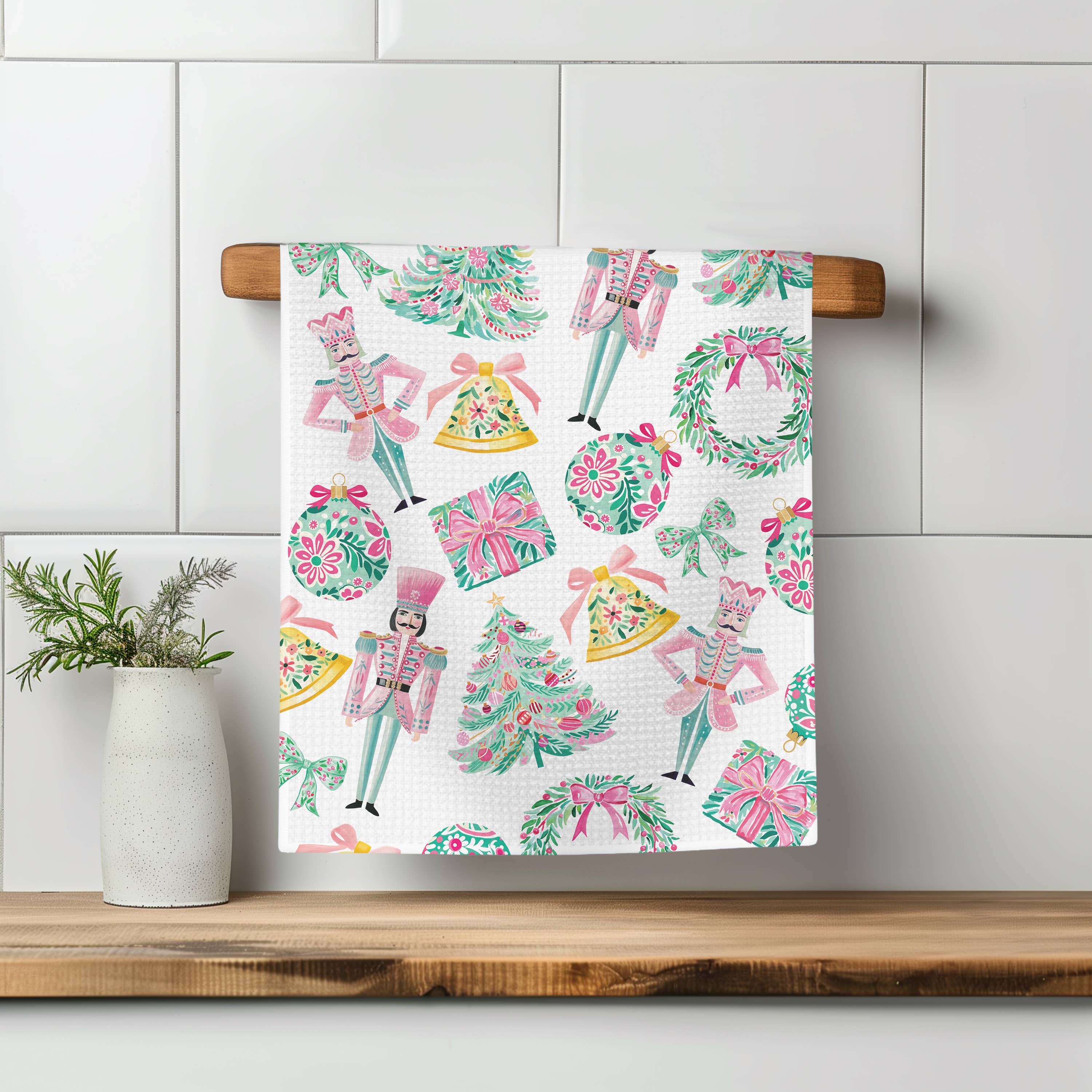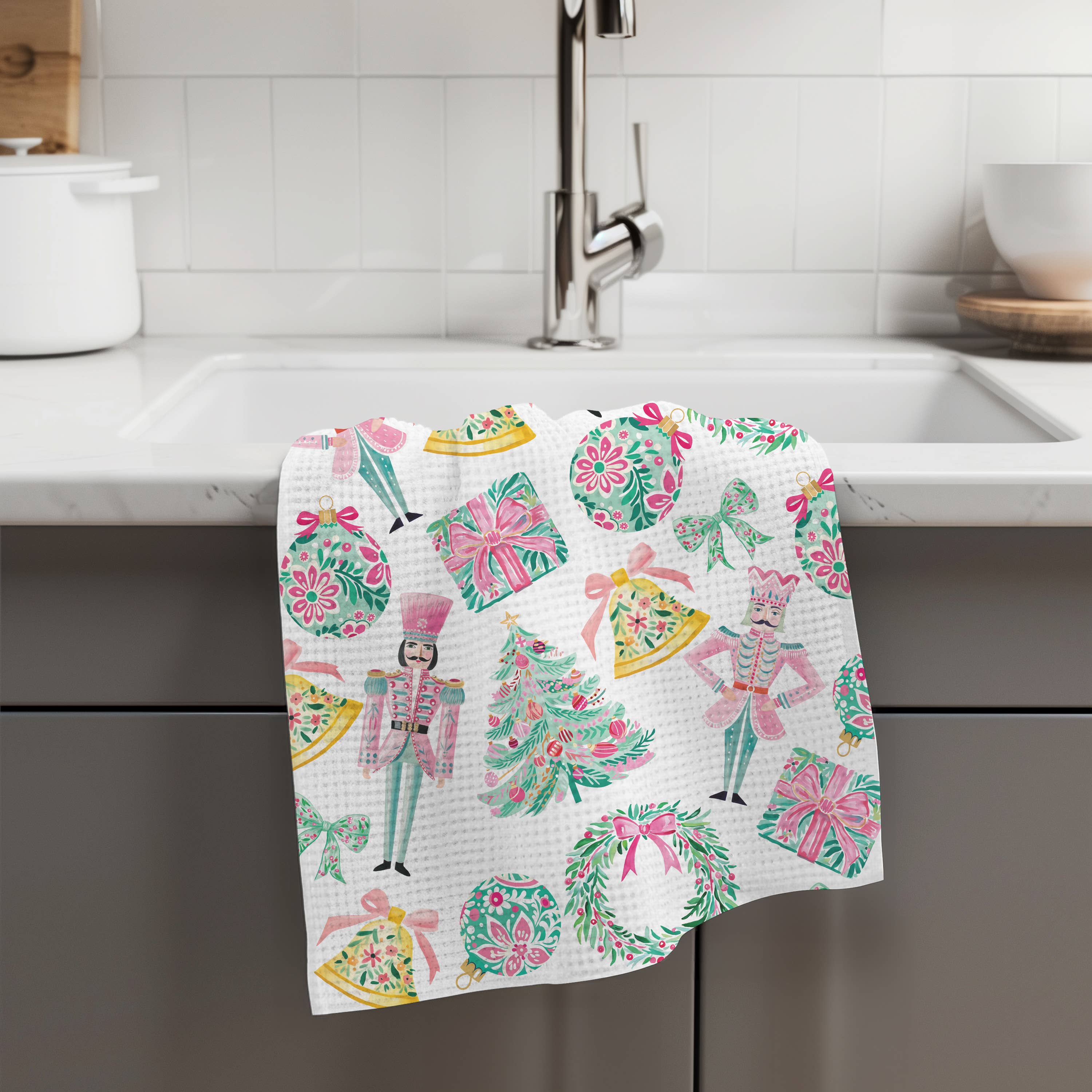 Nutcracker Pink Chinoiserie Christmas Kitchen Towel Waffle