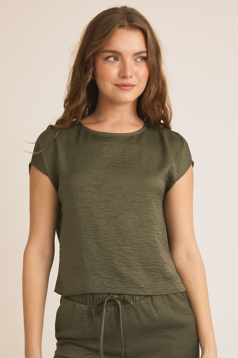 Gilli SHORT SLEEVE SATIN TOP AND ELASTIC WAIST TIE SATIN PANTS SET