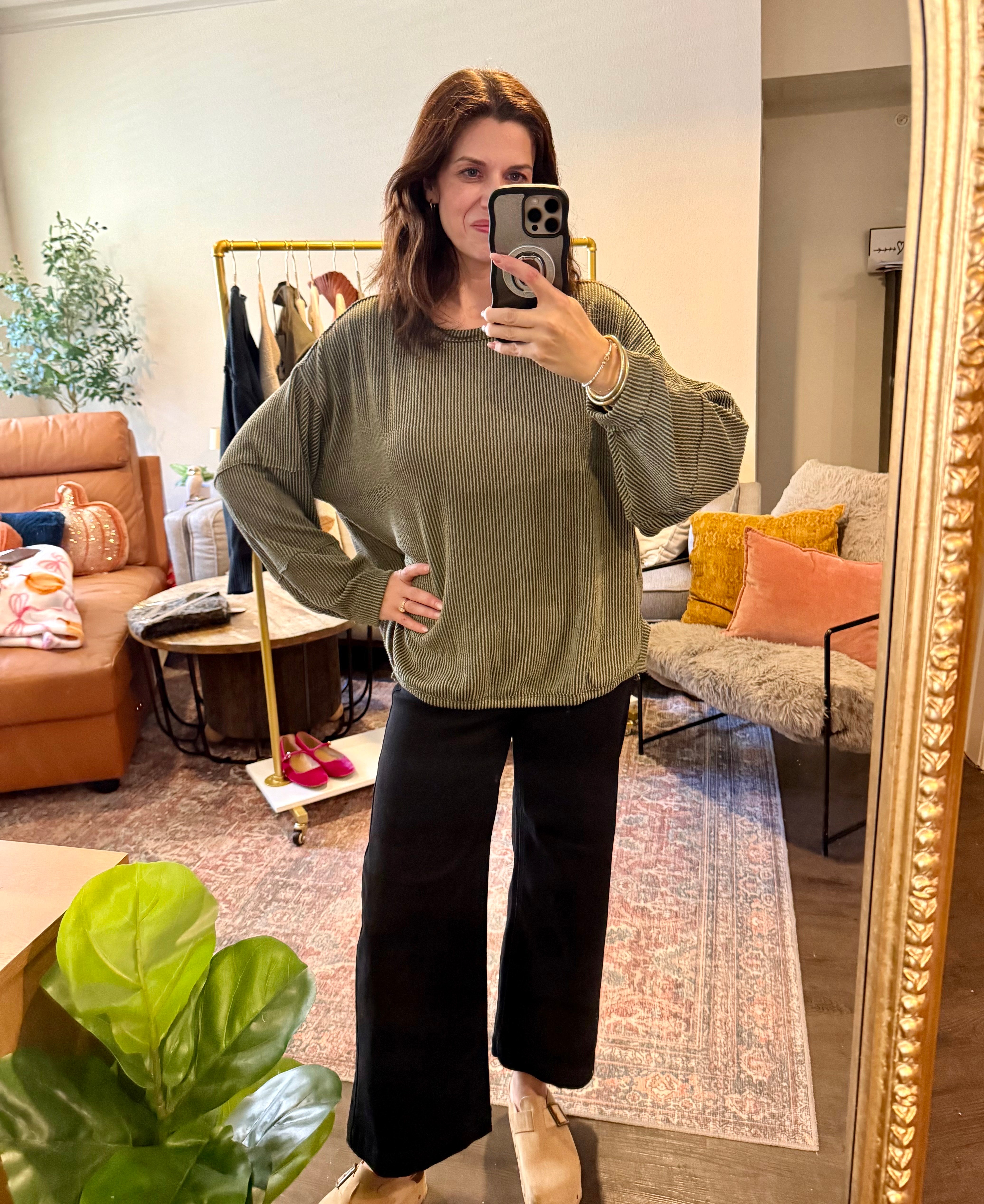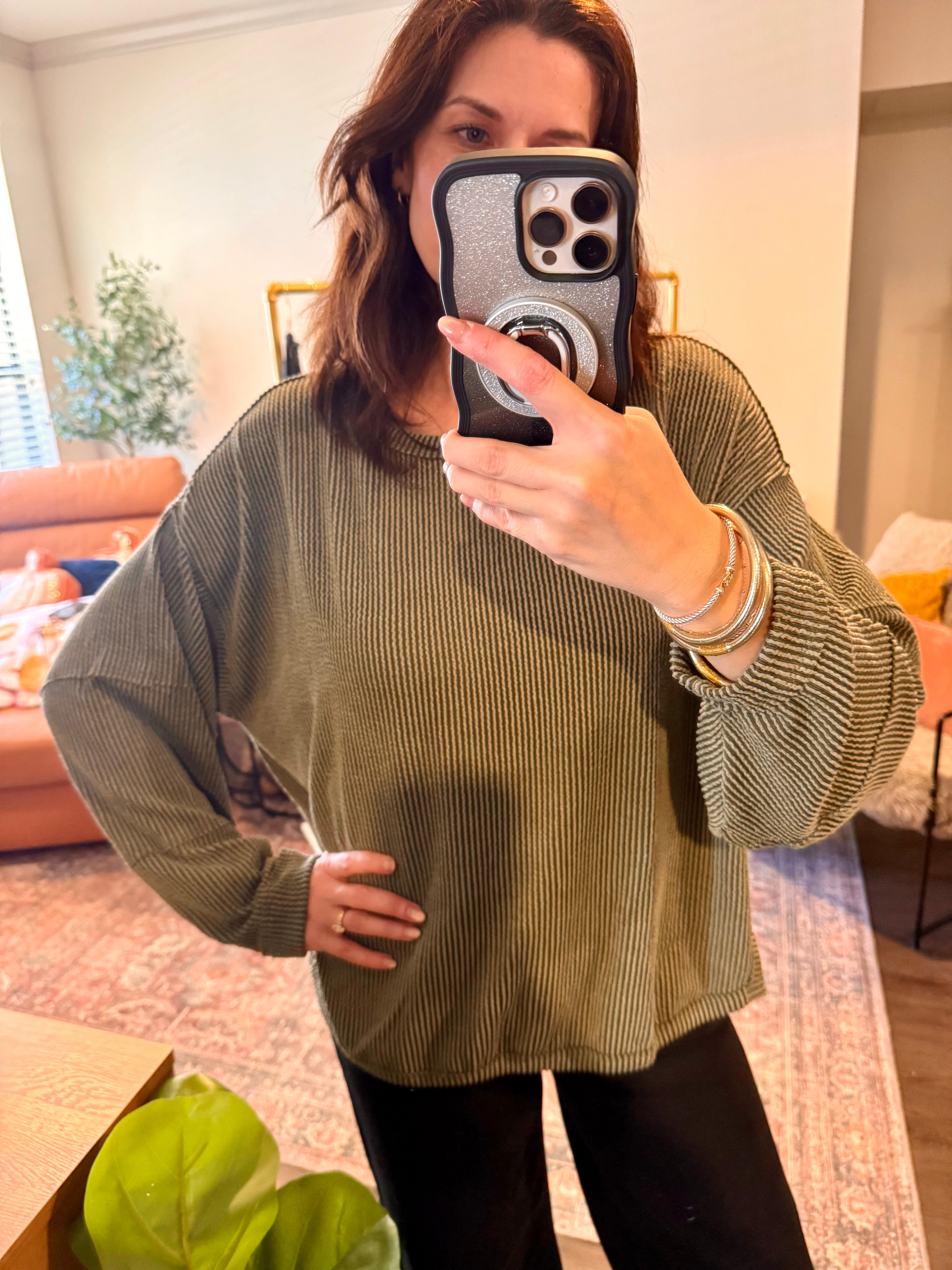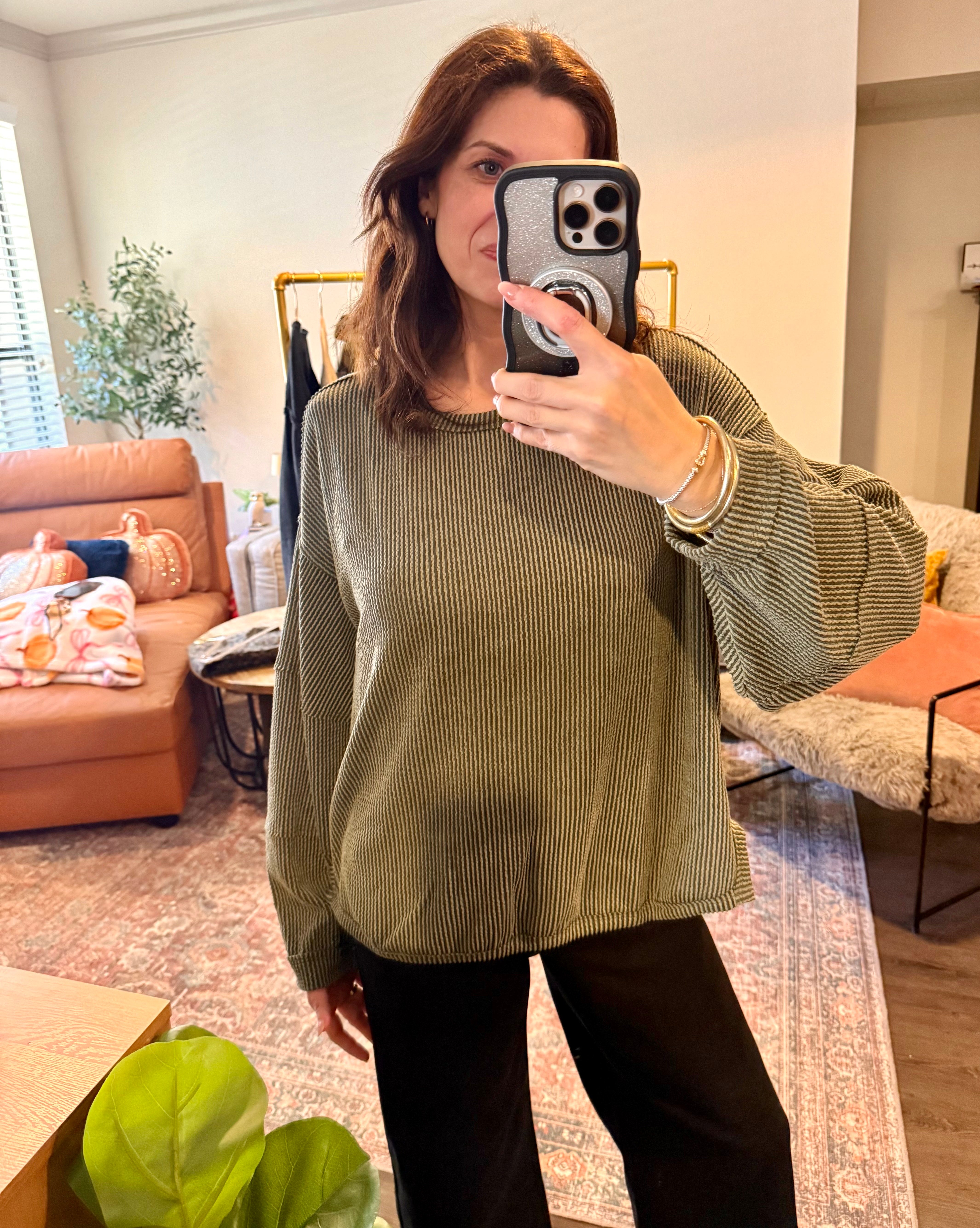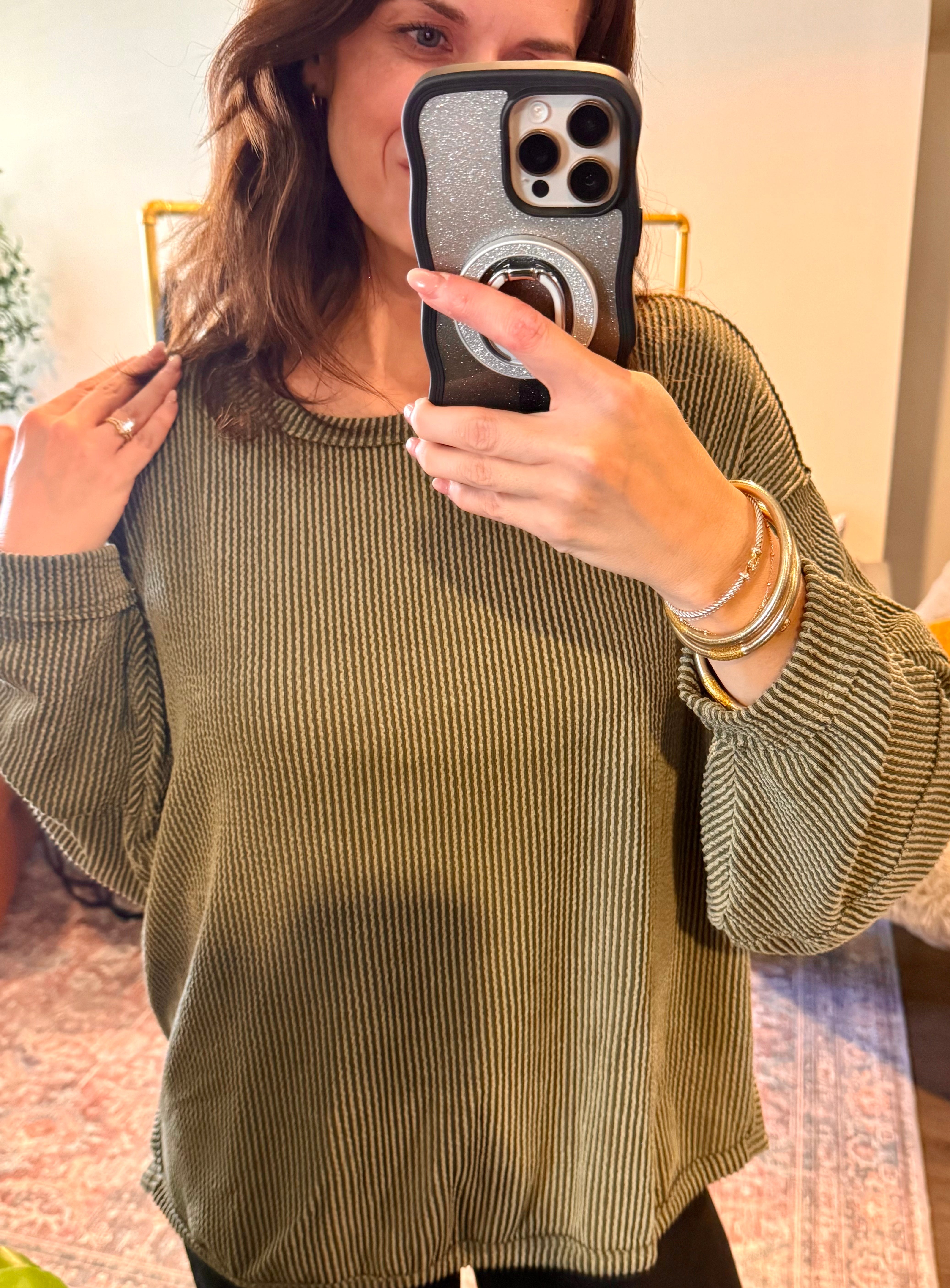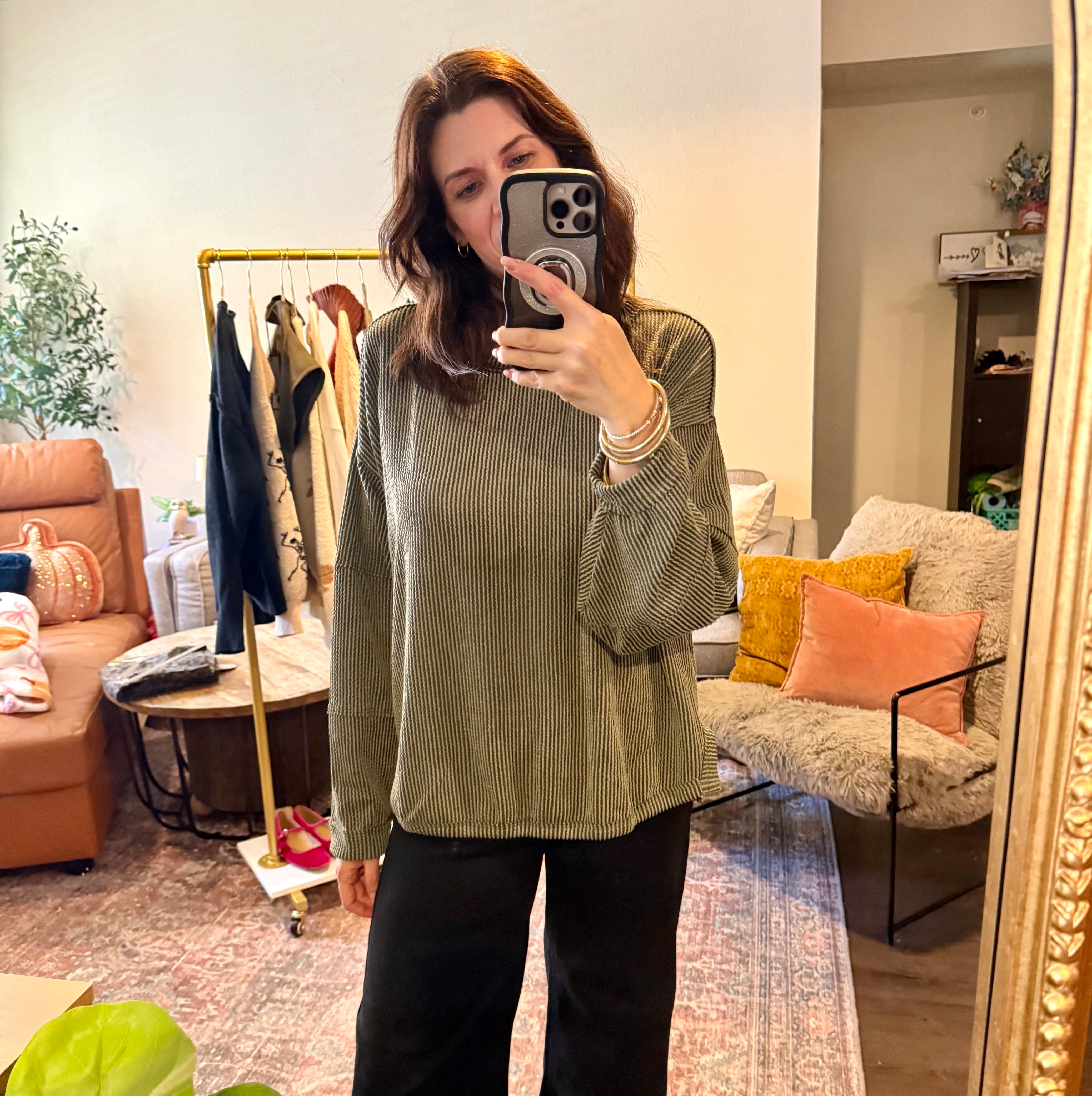Gilli Round Neck Long Sleeve Top in Olive Green