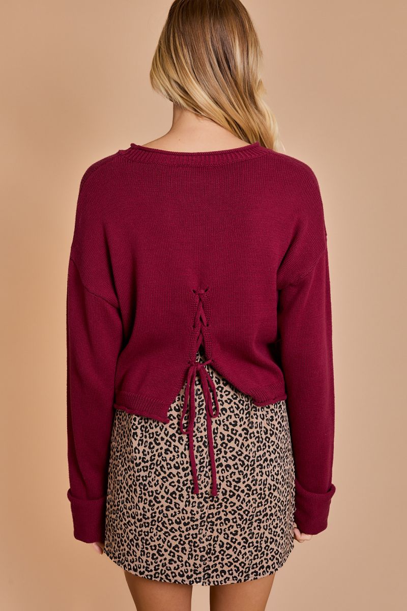Gilli FOLDED SLEEVE, Lace up back SWEATERÂ
