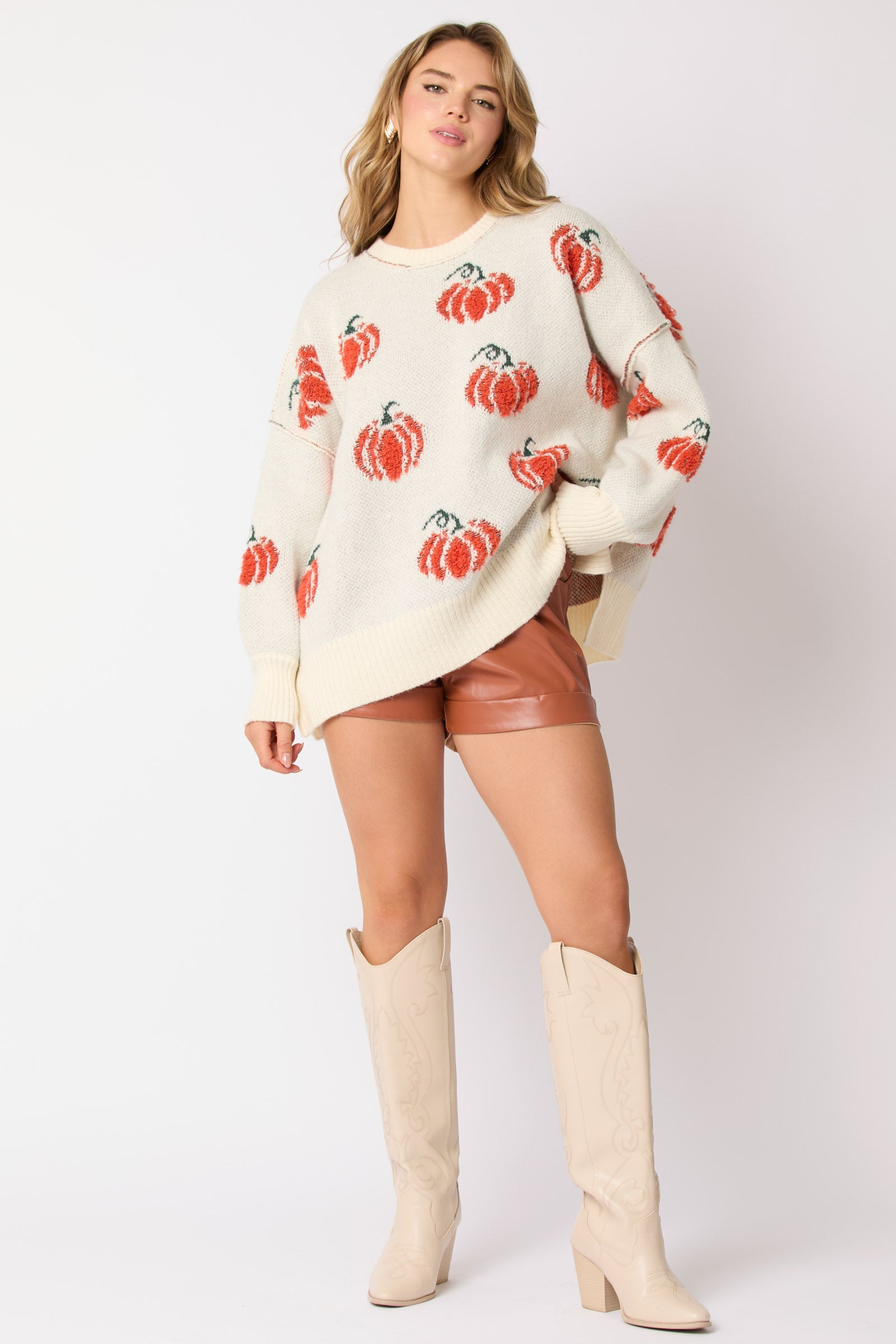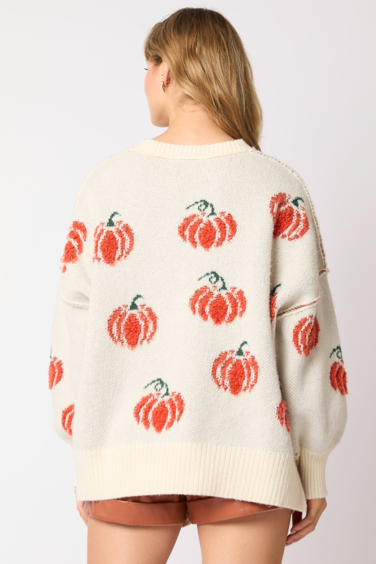 Fantastic Fawn Pumpkin Long Sleeve Sweater. Cream with orange pumpkin pattern and SO very soft!
