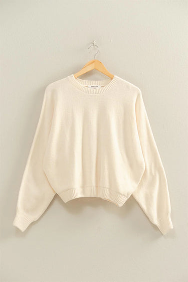 Feel warm and cozy the instant you put on this sweater. It has been designed with a round neckline and long balloon sleeves with drop shoulders. The relaxed-fit bodice ends at a ribbed hem.