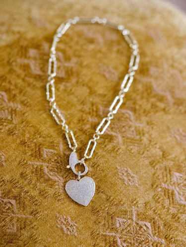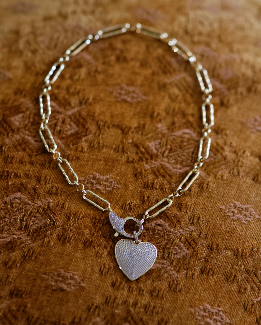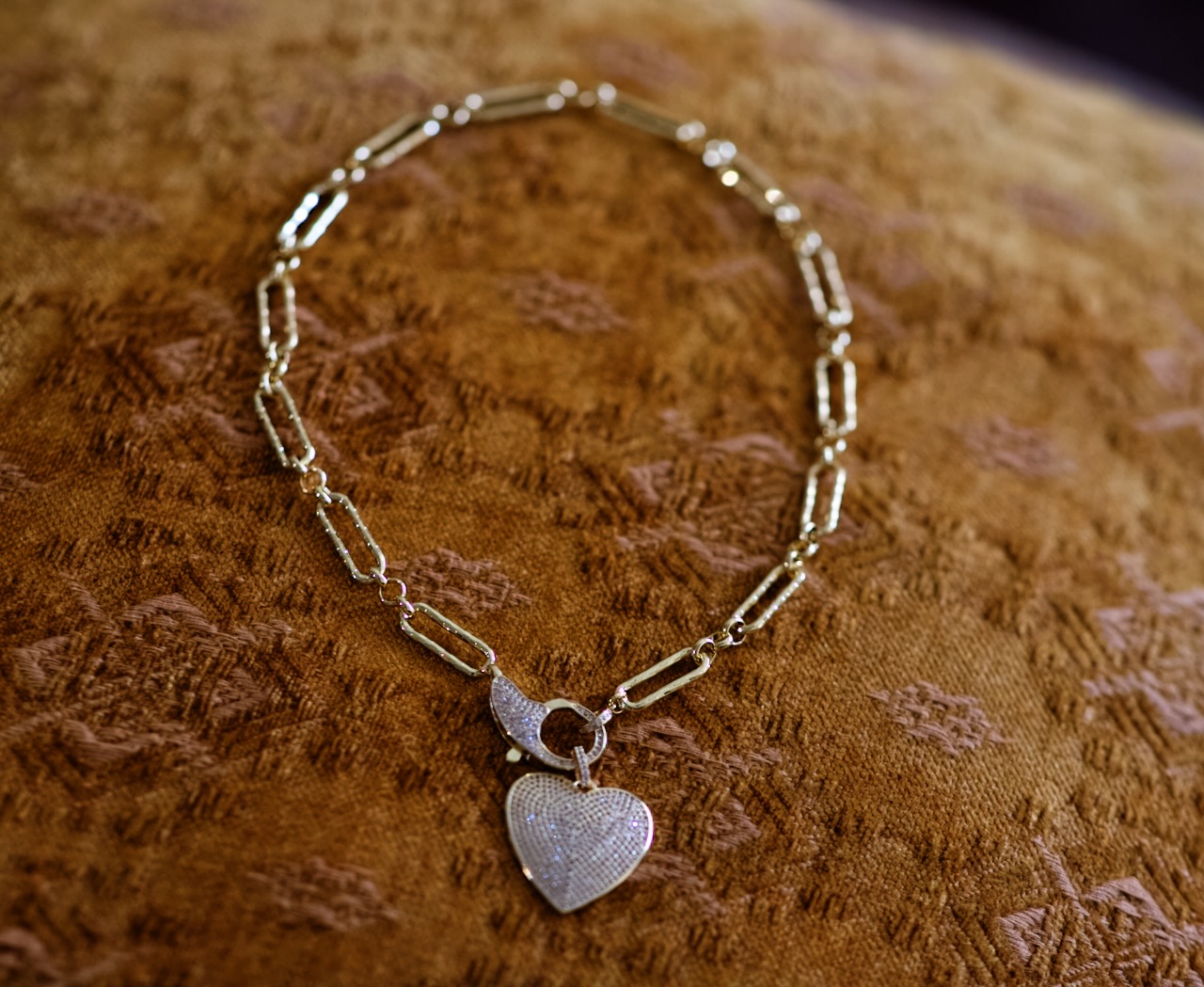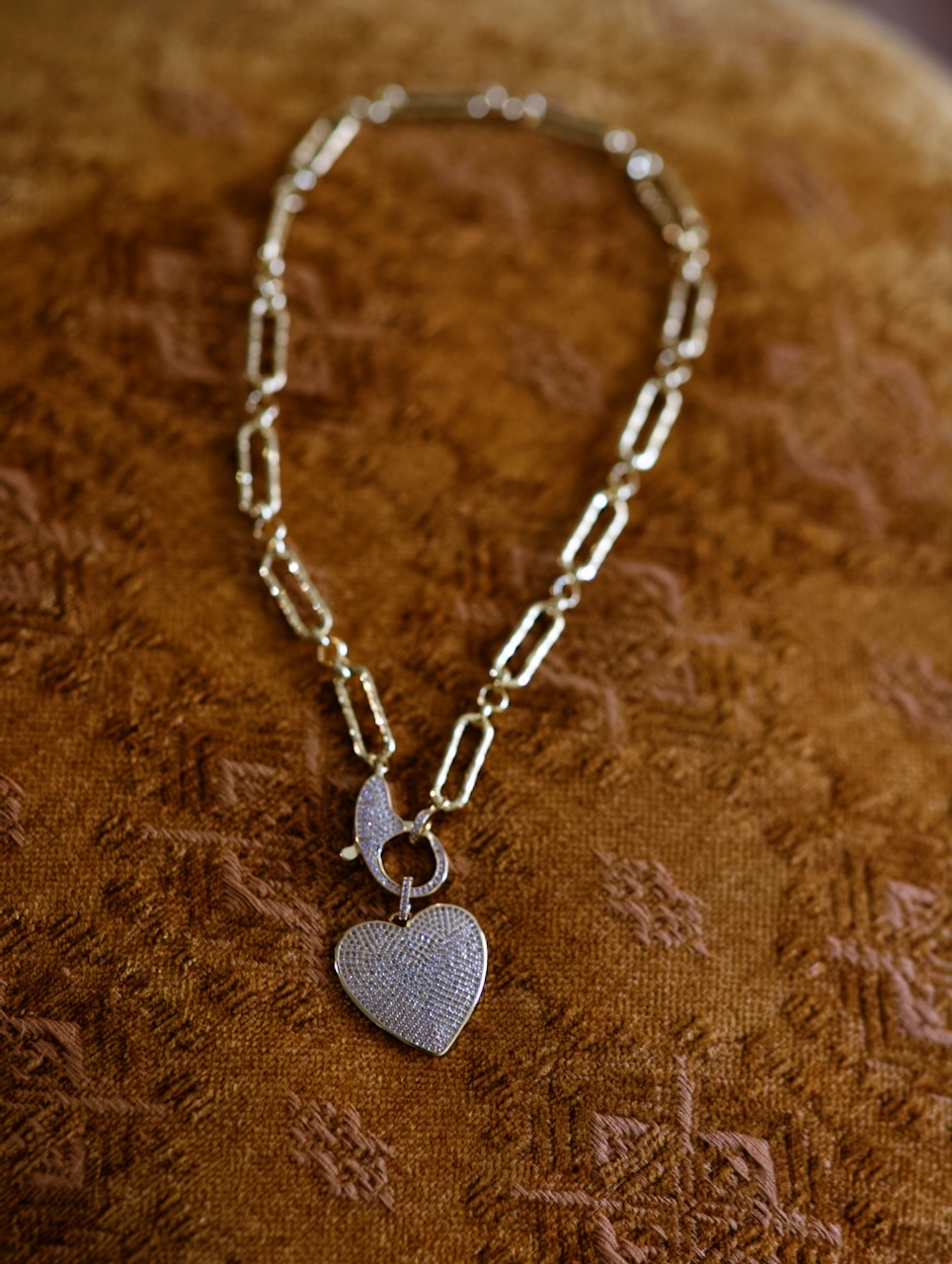 Gemelli Large Chain Necklace with Heart Charm. This necklace is so stunning with a pave heart and clasp. Heart charm is removable and other charms can be added.