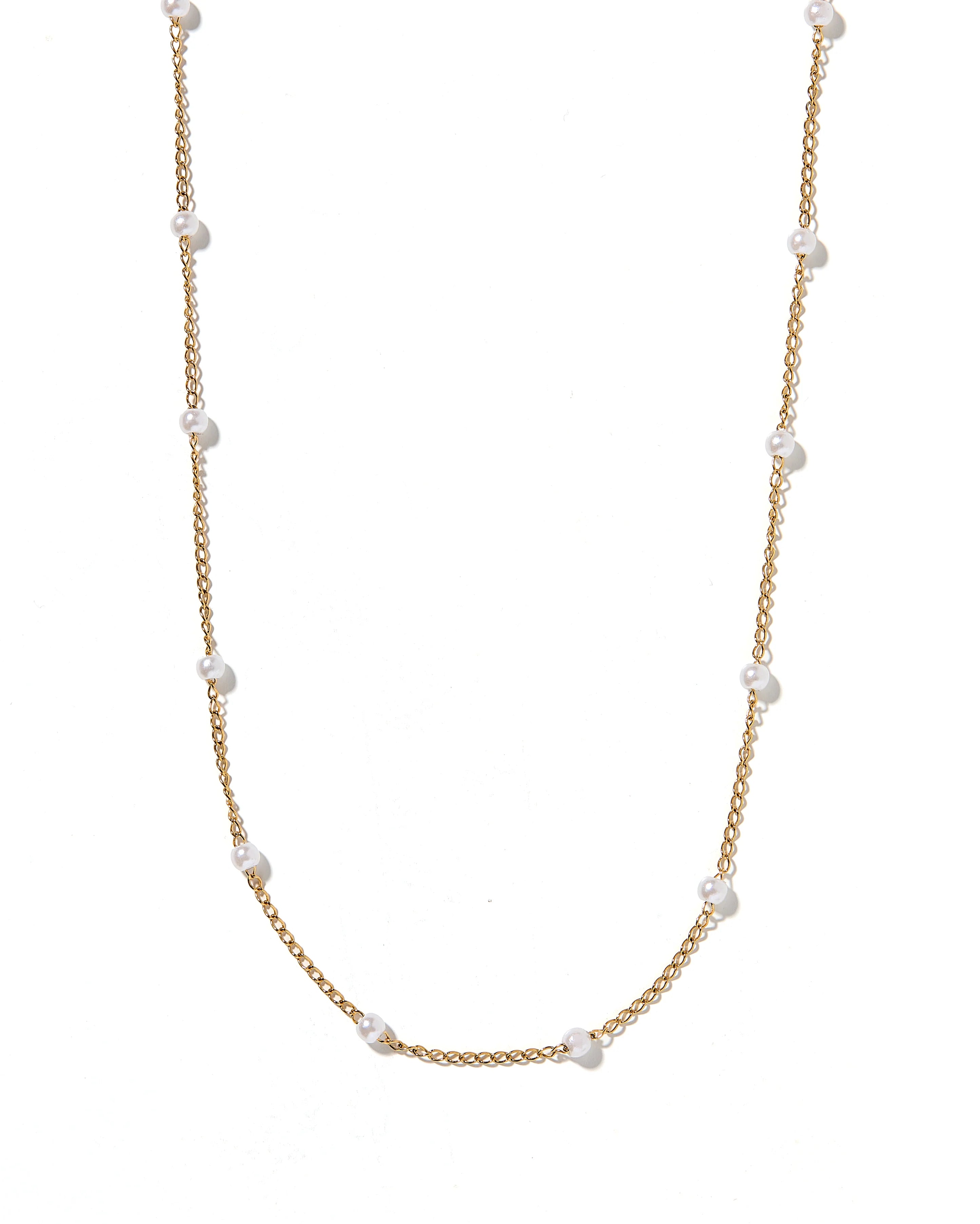 Add an elegant touch to your collection with the Dabney Pearl Necklace. This beautiful piece features a gold chain with delicate pearl accents, creating a sophisticated and timeless design. Crafted from 100% surgical-grade stainless steel, the necklace is lightweight, durable, and hypoallergenic, making it ideal for sensitive skin. The 16-inch chain with a 2-inch extender ensures a comfortable and adjustable fit, perfect for any occasion.