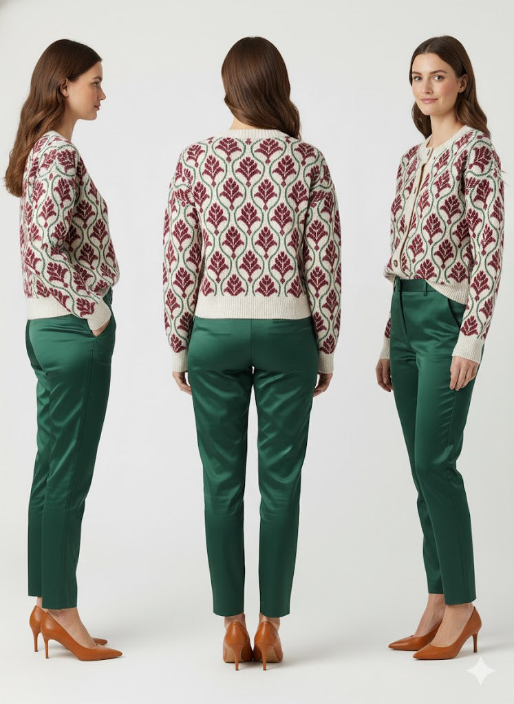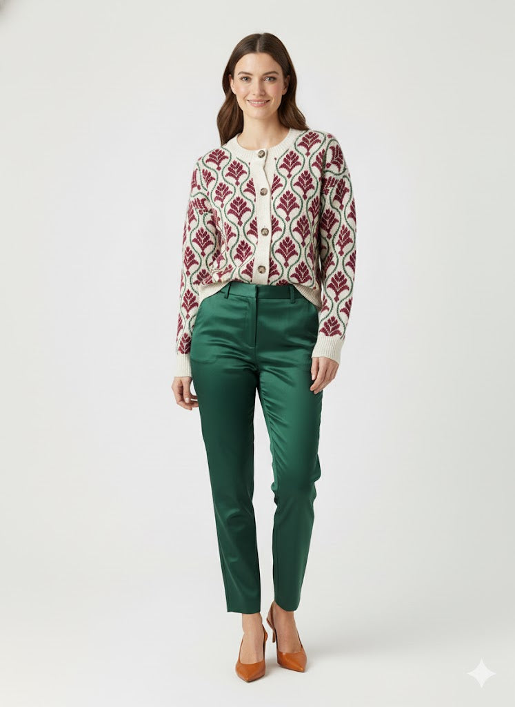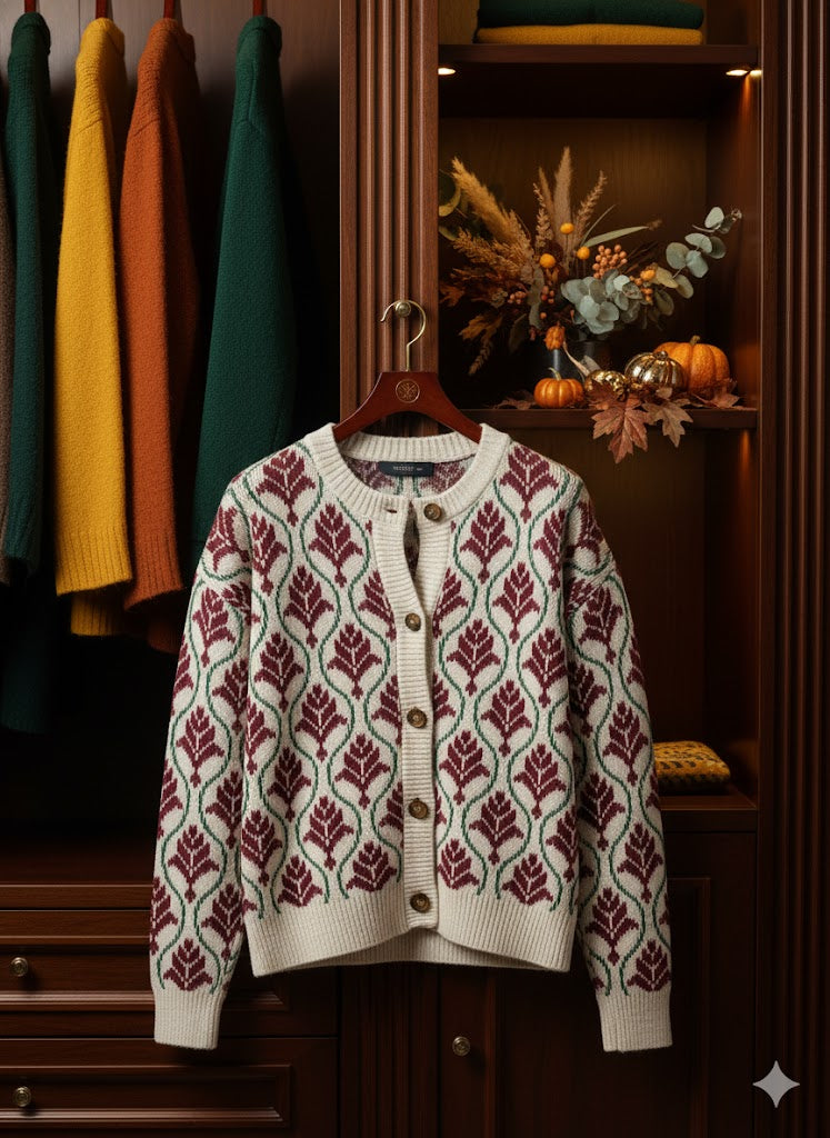 Jacquard Mix Button-Front Knit Cardigan in Berry