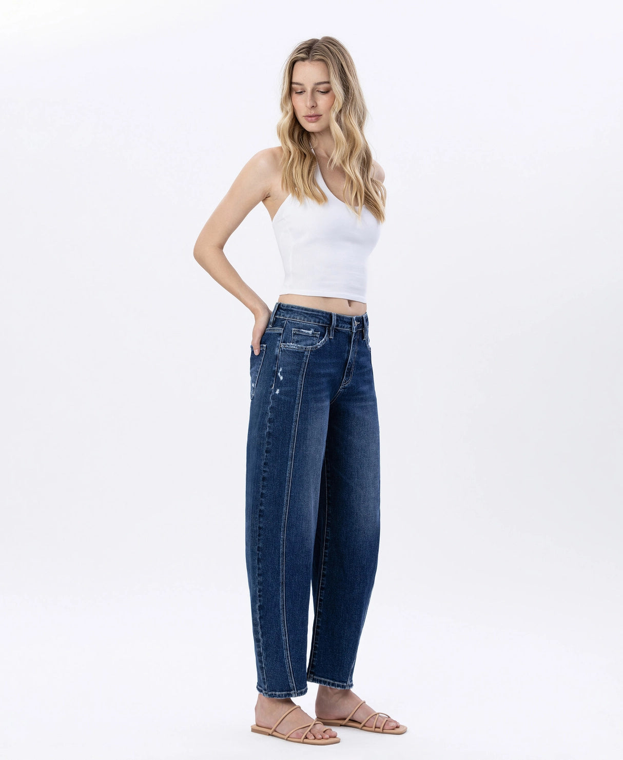 Lovervet Hish Rise Barrel Jeans in a Dark Wash