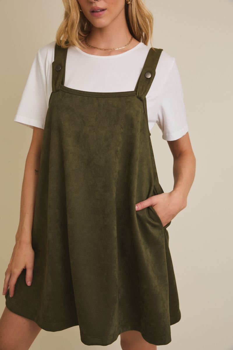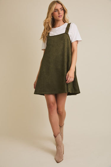 GILLI OLIVE GREEN ROUND NECK STRAP MINI DRESS