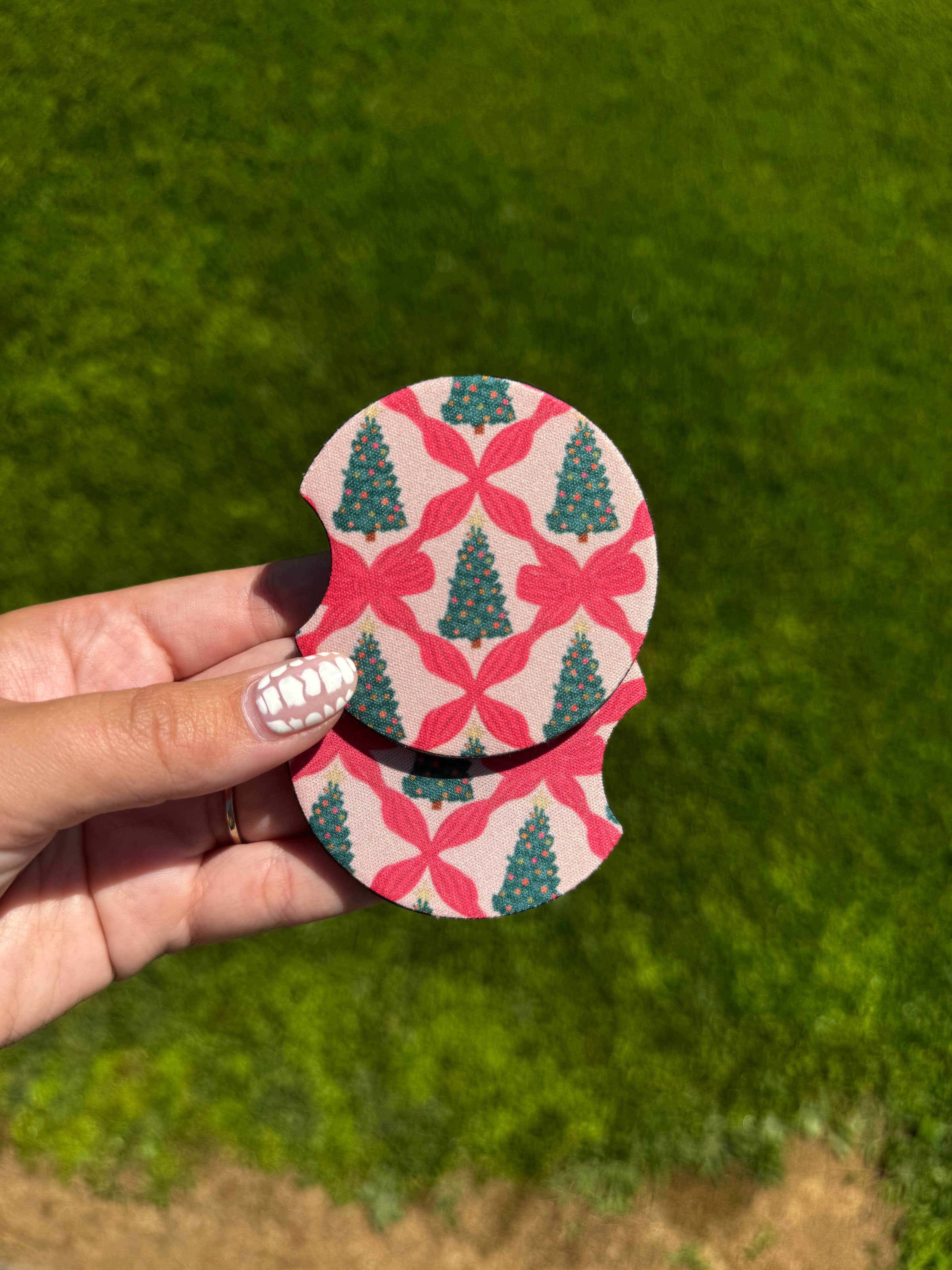 Bow Christmas Tree Car Coaster Set