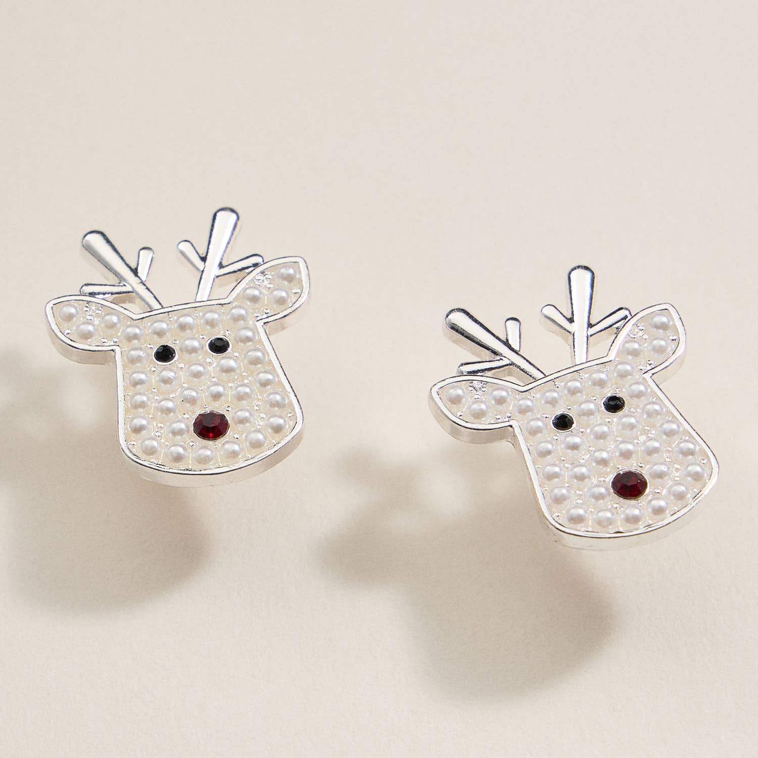 Add some festive charm to your holiday attire with our Christmas Rudolph Head Stud Earrings decorated with pearls. These cute and adorable earrings showcase the iconic Rudolph head, perfect for spreading Christmas cheer wherever you go. The perfect accessory for any Christmas lover! Approx: 0.75"