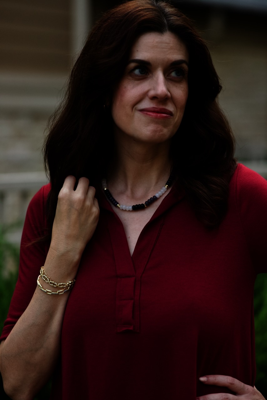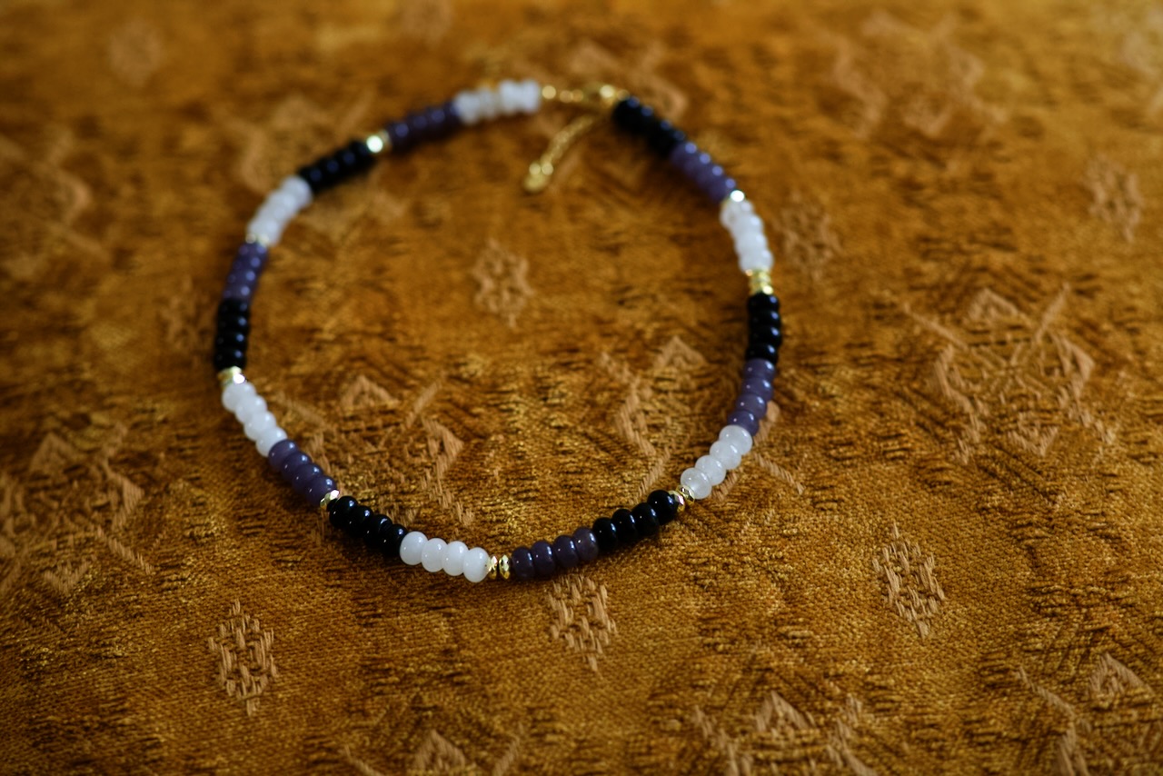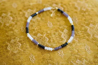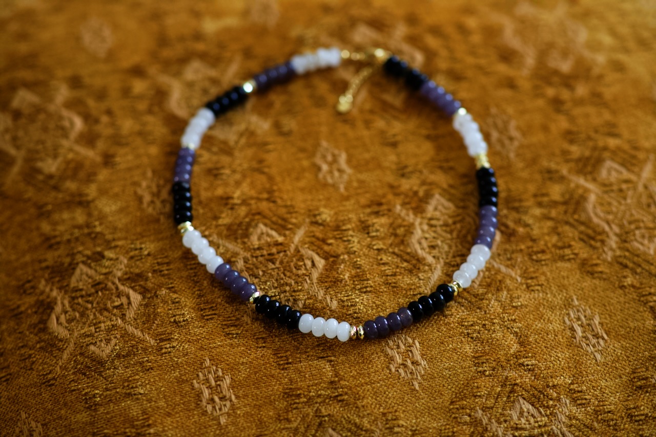 Gemelli Beaded Necklace, Black/Grey/White Beads with gold spacers