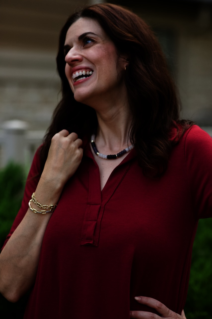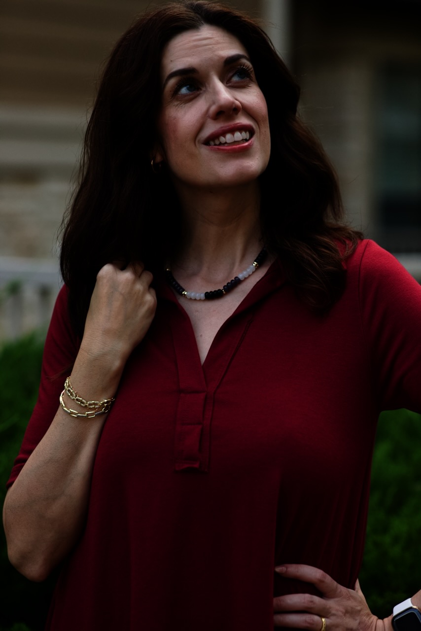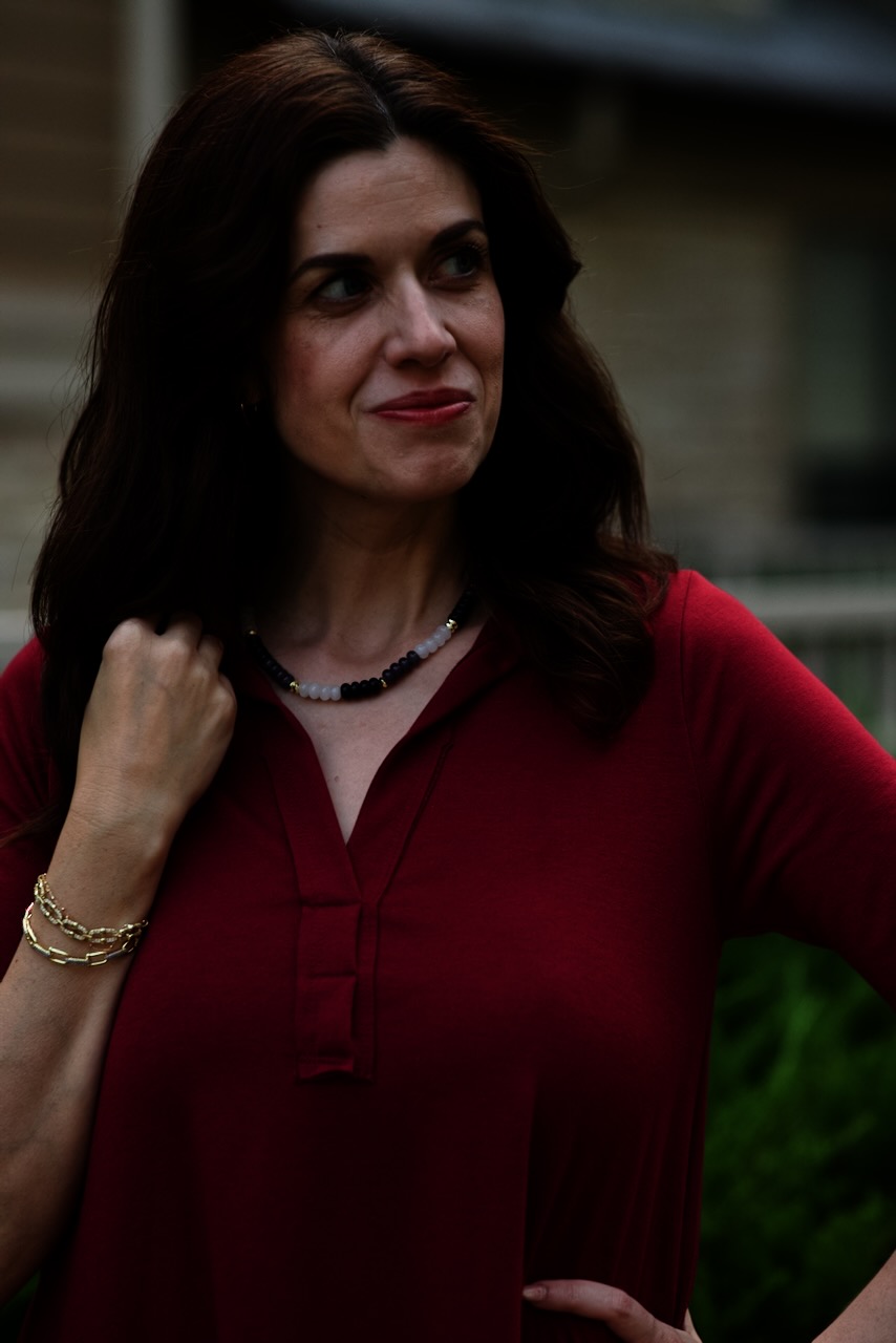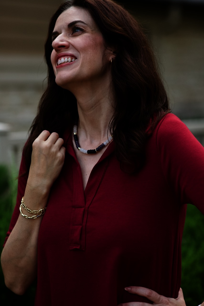 Gemelli Beaded Necklace, Black/Grey/White Beads with gold spacers