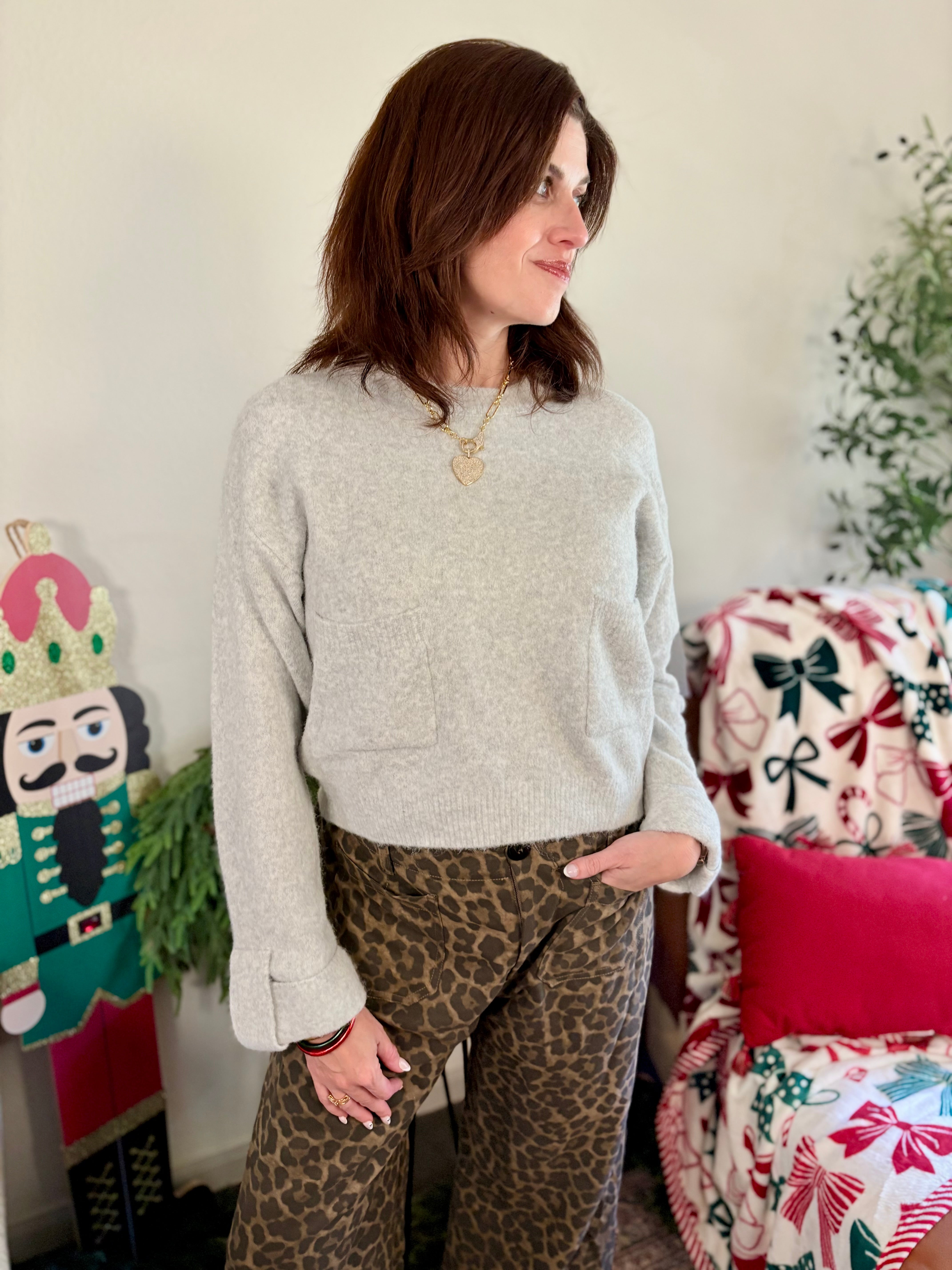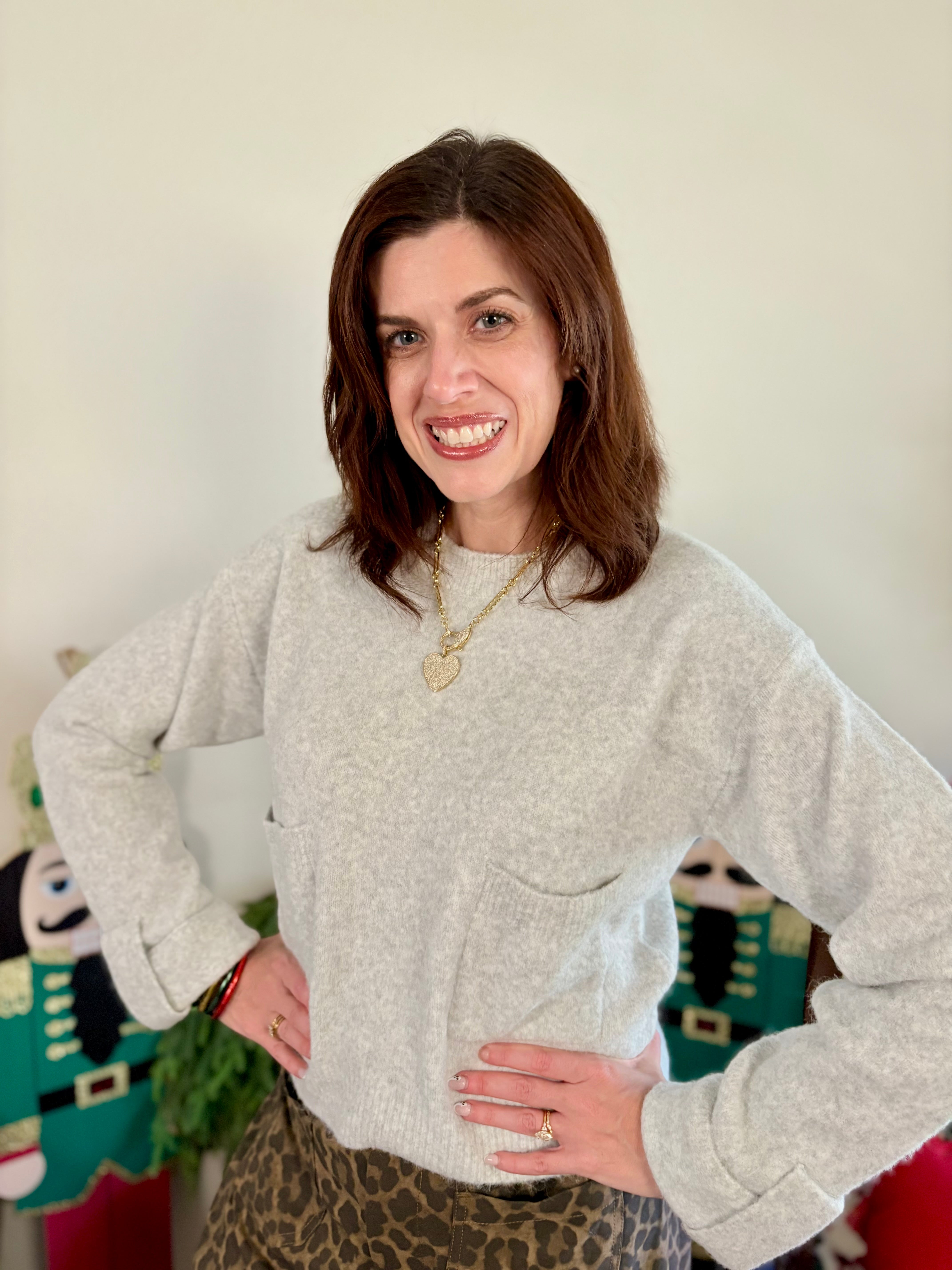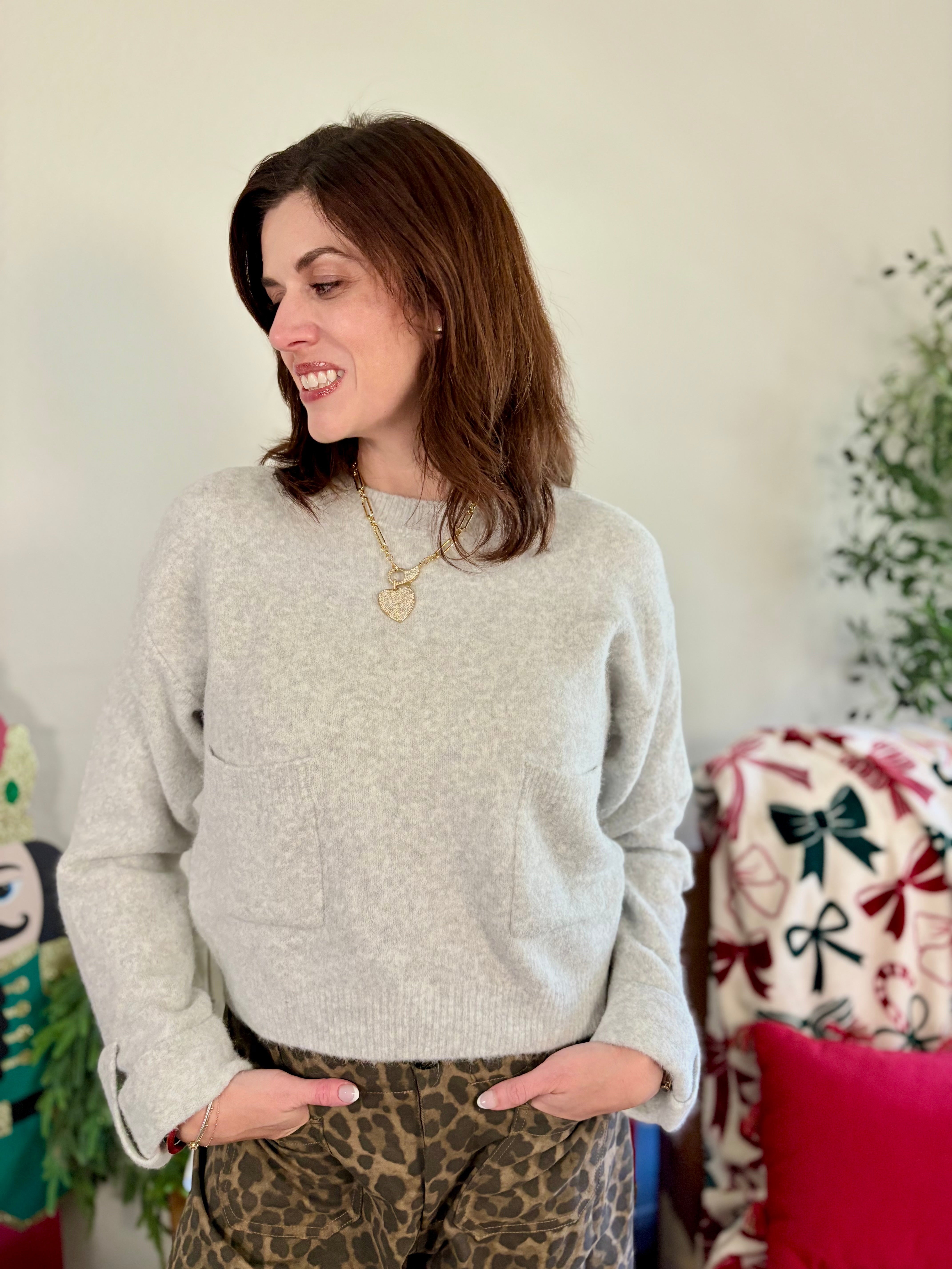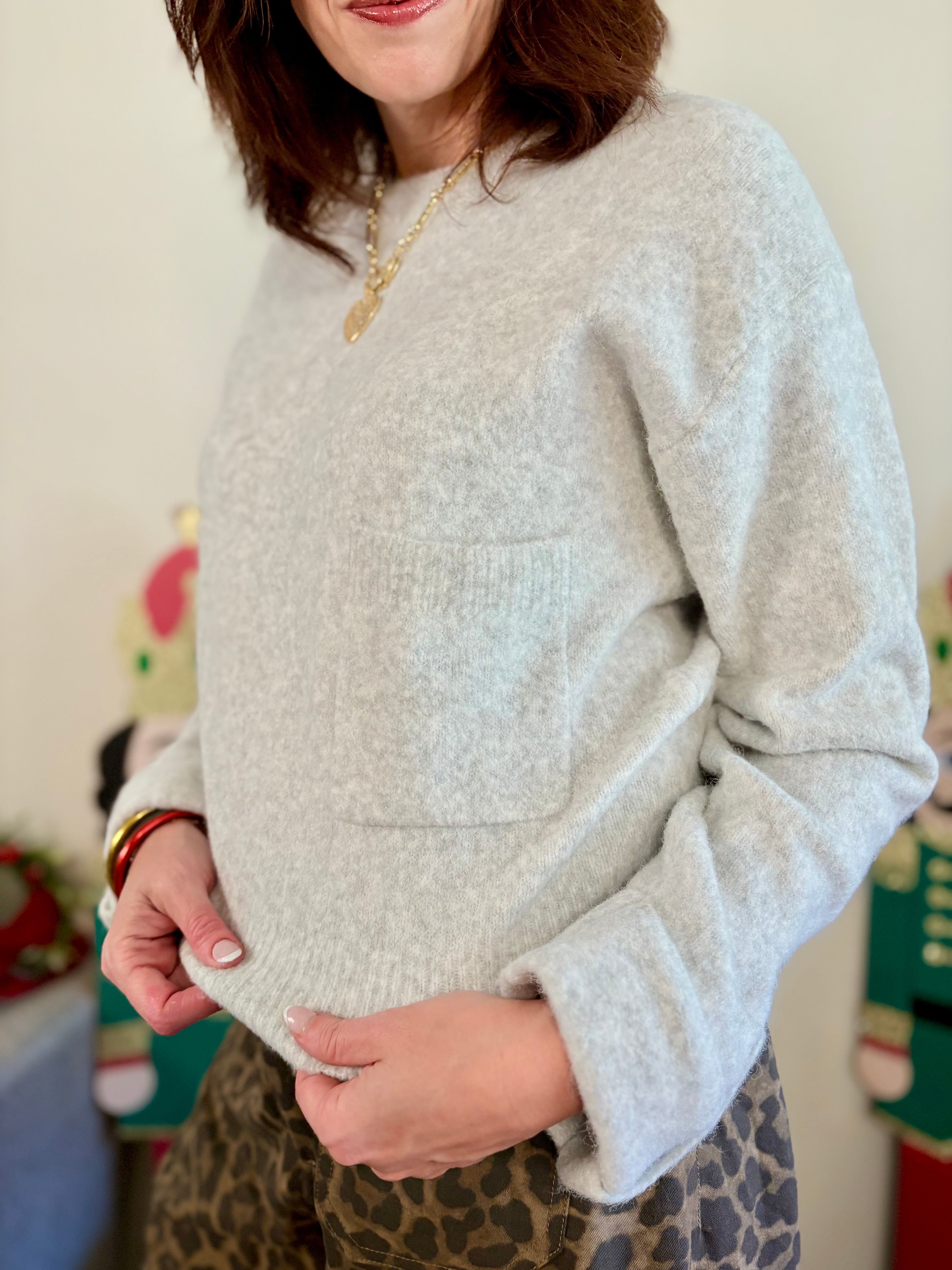 Mable Grey Sweater with pocket and sleeve detailsĀ